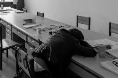 办公室里,一位老师深夜还在批改学生作业,实在太累了,就趴在桌子上小憩一会儿。
