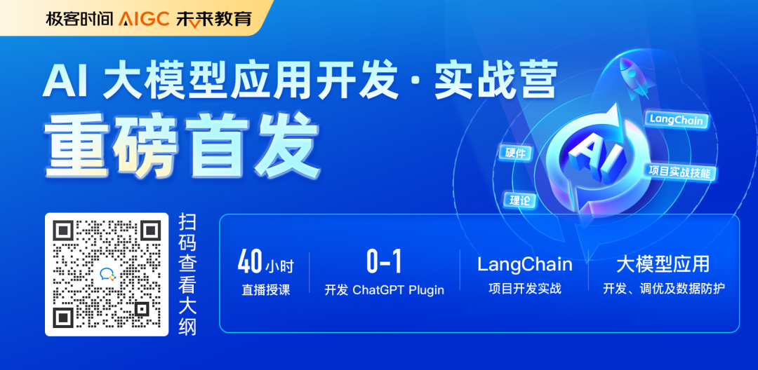 极客时间《AI 大模型应用开发 · 实战营》首发,作者是深耕 AI 领域多年的技术专家彭靖田。