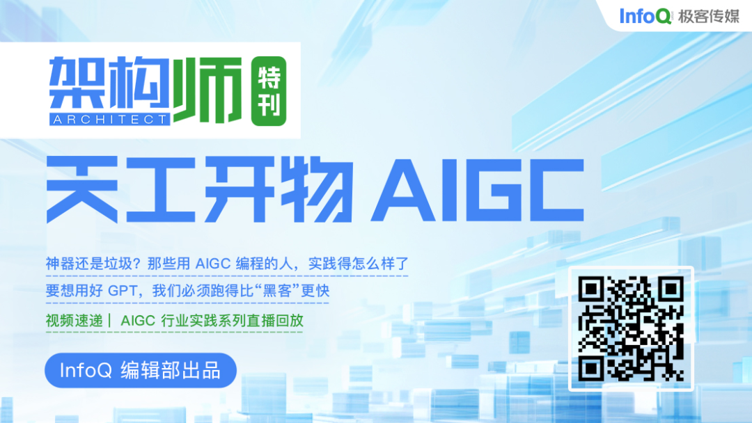 本文节选自《架构师特刊:天工开物 AIGC》。本期我们围绕“AIGC”主题,邀请了来自不同领域、不同行业的 AIGC 早期实践者进行分享,还汇集了最近备受关注的热门事件,尽可能为读者同步 AIGC 领域的第一手信息!识别下图二维码,即可获取电子刊!