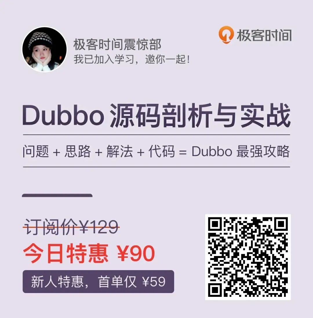 这张图谱来自何辉的极客时间专栏《Dubbo 源码剖析与实战》。这个专栏,应该是你离顶尖技术人的思维过程最近的一次了。看了更新的几篇,没有其他花里胡哨的东西,以“发现问题——分析问题——解决问题”的案例驱动的思路,从一个问题现象出发,分析如何思考问题👉推导需要的技术支撑👉利用已储备的知识进行解决👉针对已解决的方案快速细化出落地方案。