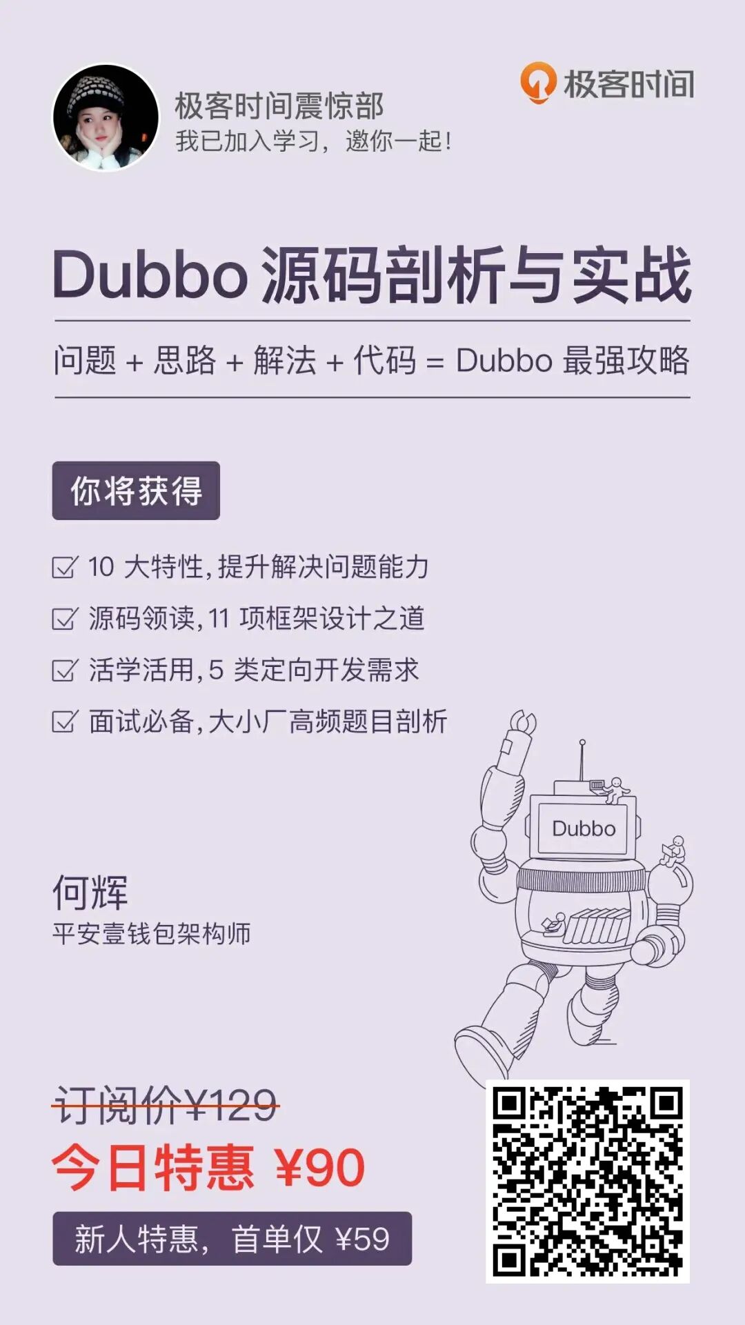 只有掌握好那些“不变”的技术,你才可以更加从容地去接受技术的瞬息万变。从现在开始,我们共同开启这趟充满挑战的 Dubbo 项目实战之旅吧!If not now, when? If not you, who?