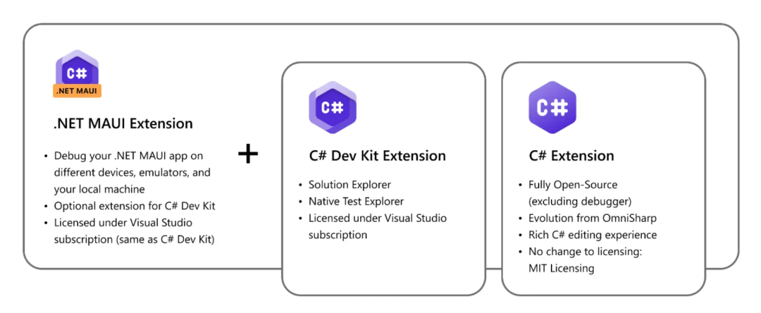 利用 C# 开发套件中的所有功能,包括解决方案资源管理器、测试资源管理器、代码导航和重构以及 Roslyn 支持的语言功能