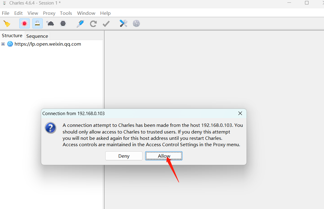 证书成功安装后就去测试抓包,打开微信,打开一个小程序