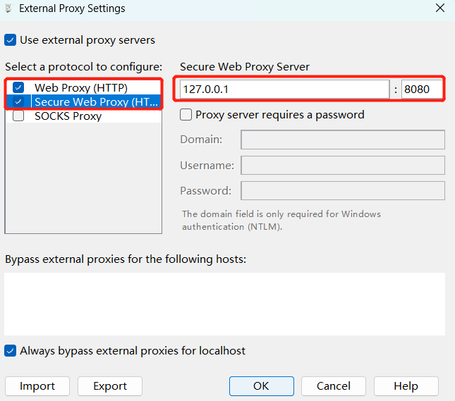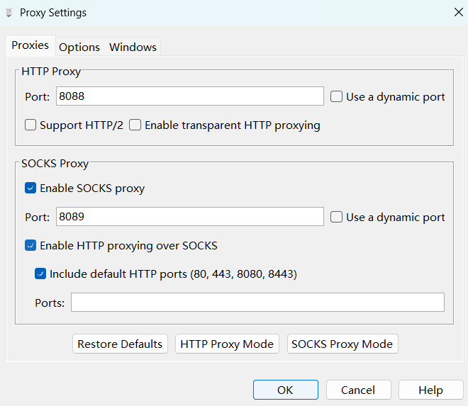 这里分别配置一个HTTP代理和一个SOCKS代理
