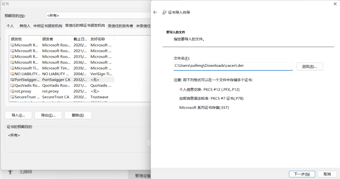 保存为p12文件,打开burpsuite,把该文件进行导入