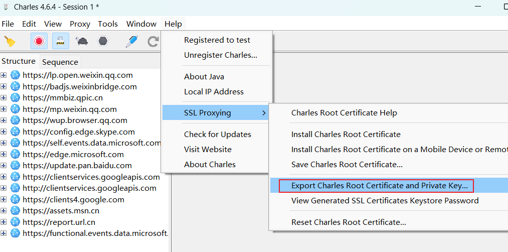 我们首先要给安卓手机导入Charles的系统证书,在Help-->SSL Proxying下