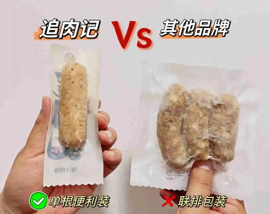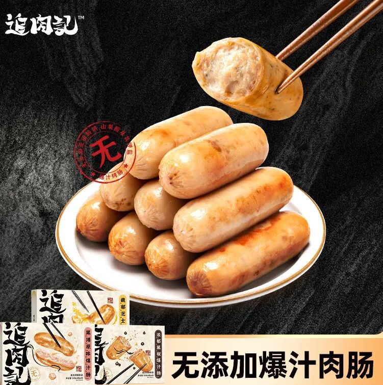 烤肠在零食界的地位无可撼动,被烤的焦黄的烤肠香味诱人,闻着就想流口水~夜市摊,烧烤摊,野餐烧烤必然少不了它的身影,咬上一口,Q弹爆汁,吃了还想吃~晚上看球,追剧,搭配上烤肠,炸鸡等零食,视觉味觉双重享受,爽爆了~香肠类食品,随着加工制作的成熟,同时也成为了科技与狠活的重灾区。市面上很多烤肠成分表堪比化学周期表,吃到嘴里有肉更多是香精和添加剂,肉还不一定是什么肉。所以今天我给大家找到了一家大厂制作,无添加,肉含量超过80%的烤肠,我家孩子经常吃~它就是锋*派、东*甄选、本*鲜物等网红烤肠品牌源头工厂自己孵化的纯肉肠品牌——追肉记。2020年,火遍互联网的第1根无添加烤肠就是从这家工厂诞生的,烤肠界的“大佬”就是它!今天没有中间环节,直接厂牌进货,品质保证!价格亲民!肉含量80%~92%,1:9黄金肥瘦比例,口口到肉,Q弹有嚼劲还不腥~