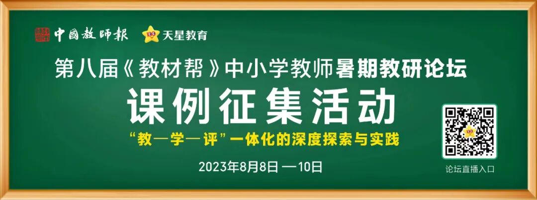 新课标背景下,为了深入推进“教学评”一体化理念在课堂教学中的有效落地,促进课堂提质增效,中国教师报和天星教育将联合举办“第八届《教材帮》中小学教师暑期教研论坛”,本届高峰论坛涵盖小、初、高全学段、多学科,届时将邀请国内40位教育专家、各省市教研员、名师工作室团队、名校名师共同参加本次论坛,聚焦新课程标准,立足课堂主阵地,帮助教师掌握深度学习的内涵和设计策略,学会深度教学设计和课堂操作方法,有效推进“教学评”一体化的课堂教学。为了展示更多优秀教师的教学风采,本届论坛将启动小学学段优秀课例征集活动,为一线教师搭建教学成果展示平台,欢迎广大教师踊跃参与。现将活动具体事宜通告如下:时间 | 活动内容 | 主题 |