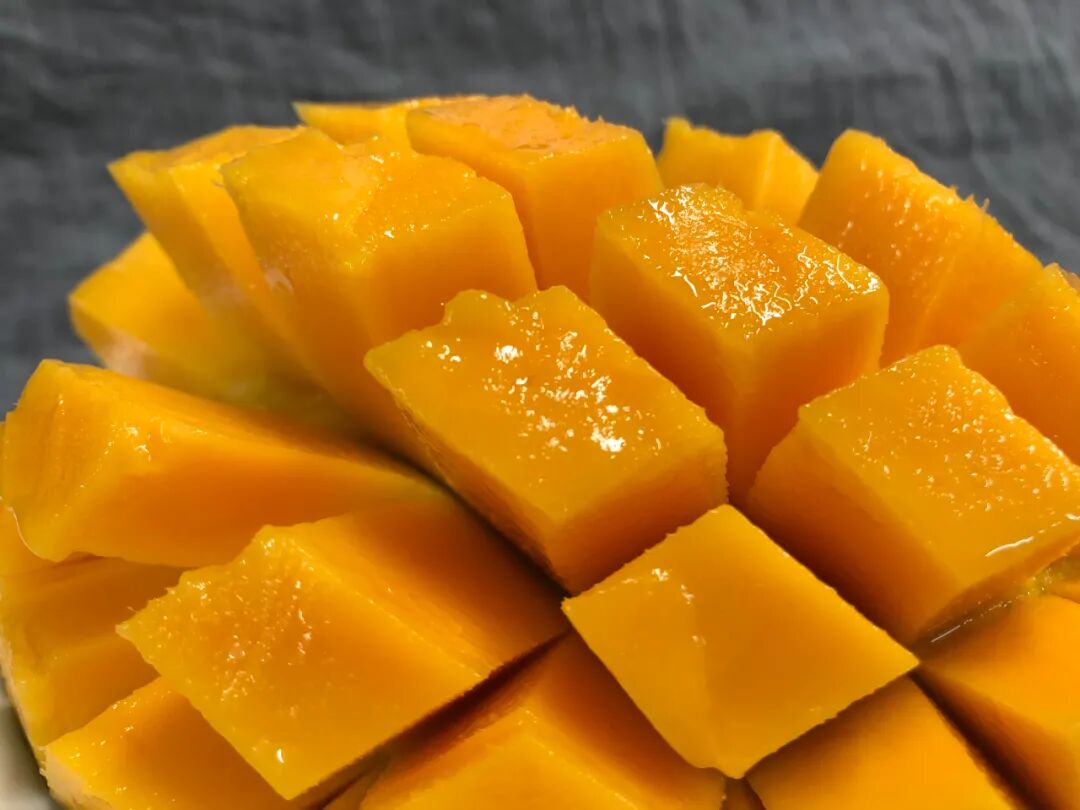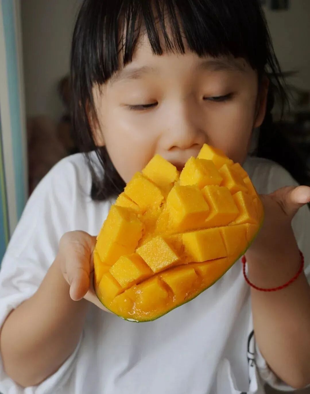 凯特芒最大的单果重达1300g左右,通常都有400g以上,娇小一点的女生,脸还没它大,因而又叫大脸芒。凯特芒不仅个头超大,同时皮薄肉厚,内核极小,仅占果重的8%左右,可食率高达80%以上。“大口吃肉”的快感,在芒果身上也可以实现。凯特芒果肉金黄,非常诱人,厚实却非常细幼滑嫩,轻咬一口就软化成汁,甜软与醇香激荡着舌尖,滋溜一下滑入喉咙,浓郁的清香果味和香甜的果肉,瞬间流窜于胸腔内部滑进肚子。![]()