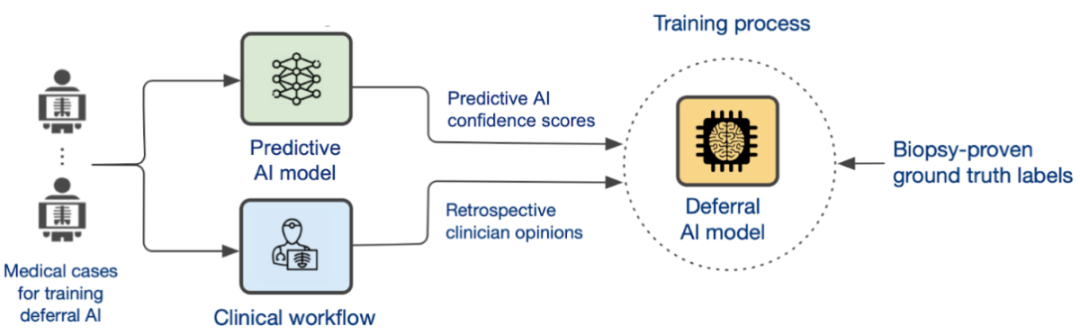 在一个示例场景中,与常用的临床工作流程相比,CoDoC不仅将英国乳房x线摄影数据集的假阳性减少了25%,还能够将临床医生需要阅读的病例数量减少2/3。研究团队已在GitHub上开源了CoDoC的代码。