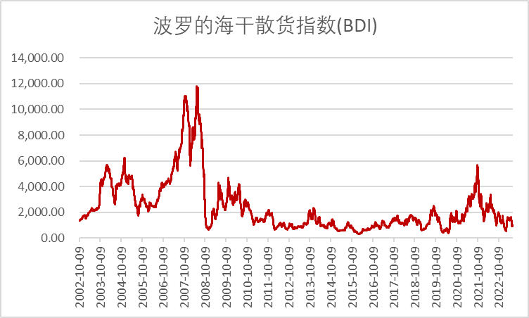但2022年,全球经济增长放缓,印尼、印度、俄罗斯等国限制粮食、煤炭等干散货物出口,中国房地产和基建面临下行压力,铁矿砂及其精矿、煤及褐煤、粮食等干散货进口需求减弱,干散货运价开始回落。