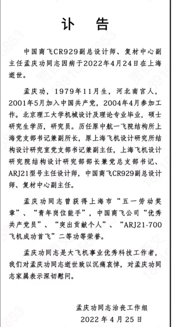 想起了曾被安排做志愿者,过度劳累猝死的CR929副总设计师孟庆功。