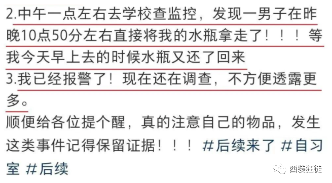女孩前一天把自己的水瓶遗落在了自习室,