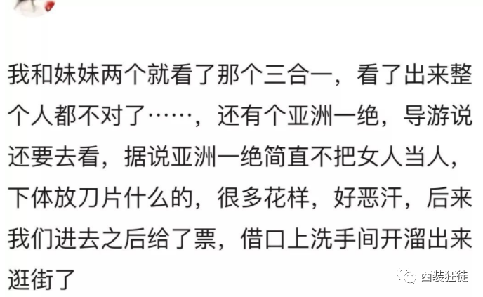 有些人第一次去没经验,在毫不知情的情况下,跟家人或者同事一起看了成人秀,画面尴尬的让人窒息......