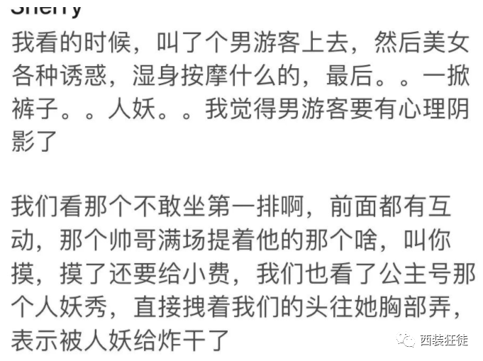直接以大尺度的互动为噱头吸引游客,表演内容夸张的难以想象。