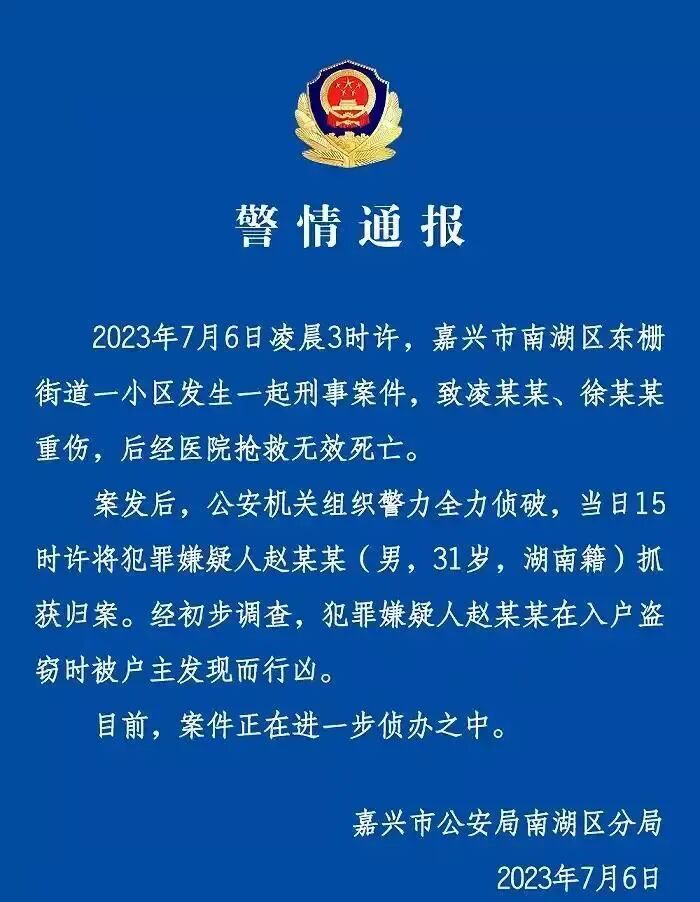 7月6日,嘉兴市官方通报“嘉兴夫妻命案”的消息。确认了这起案件的真实性。