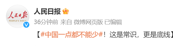 @人民日报等媒体也发文称:中国一点都不能少!这是常识,更是底线!