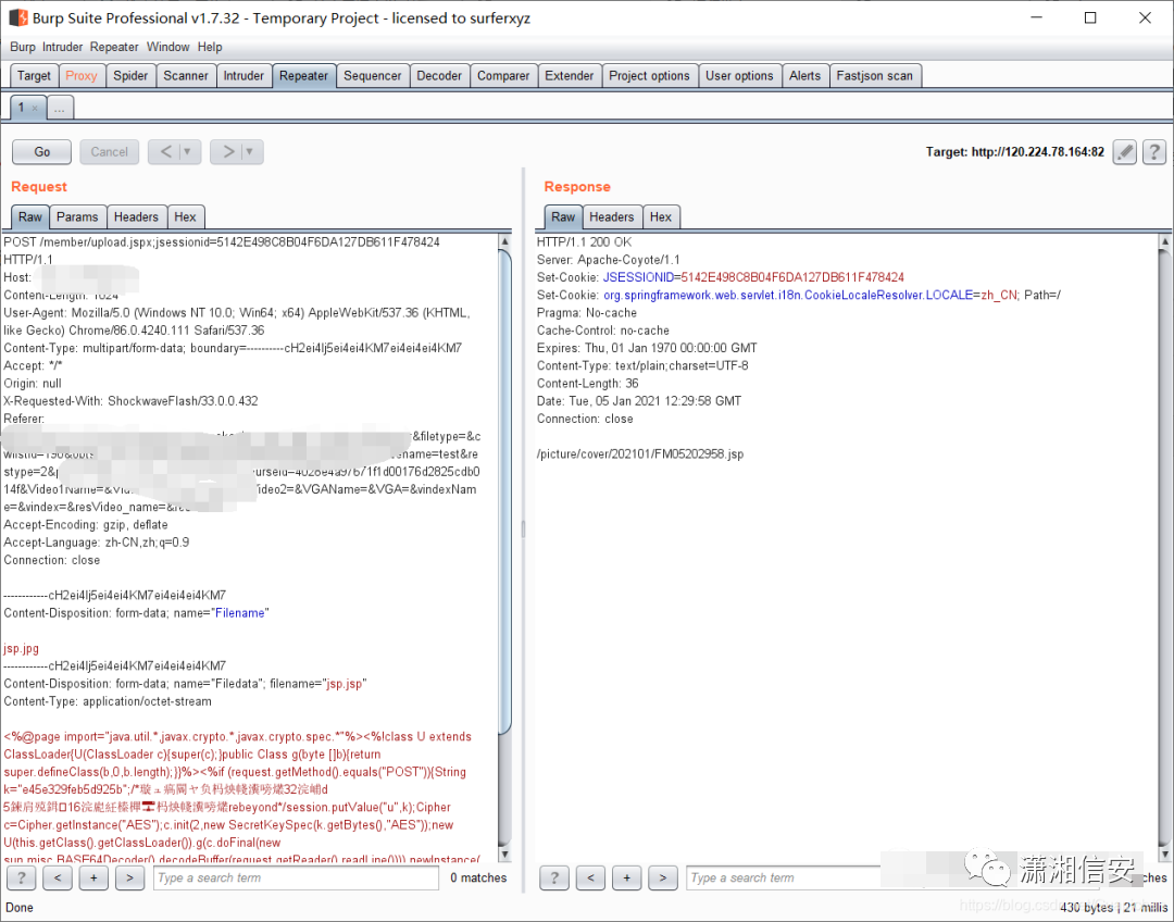 这时候直接拼接返回的路径,用冰蝎直接连接木马