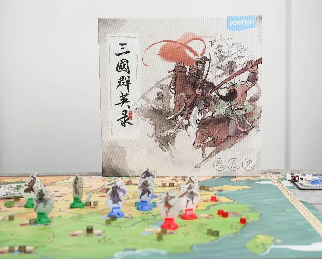 举例:《三国群英录》,虽然三国主题是常见的国风桌游类型,但这款《三国群英录》,虽然初见的时候觉得像三国杀,毕竟分了魏蜀吴群四个阵营,但真上手之后,却是少有的让我能感受到自己以前玩《光荣三国》时感受的产品。指挥自己的武将真实的在广阔的三国大地上不断经营、攻略,通过占领城池,击败对手武将,最终赢得天下。