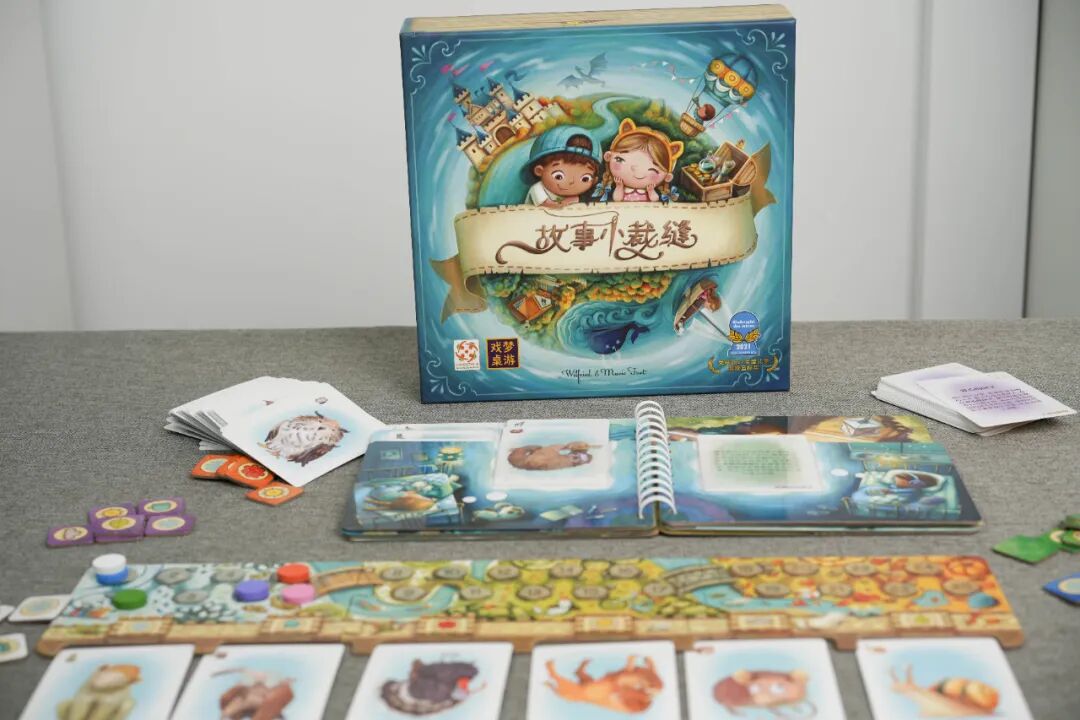 举例:来自Lifestyle Boardgames的这款《故事小裁缝》,曾经入围2021年德国桌游大奖蓝标儿童奖决赛,在去年得到全球关注,现在也被CMON引进了。这是一款聚焦培养孩子语言表达的能力,讲故事,同伴默契程度的产品。我们要一起进入10个不同的童话世界,一起探寻其中的奥秘,寻找自己的主人公。