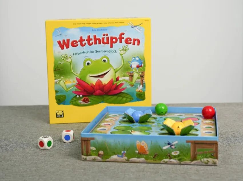 举例:HABA的这款“竞速”桌游《跳跃的青蛙》,一方面可以让小朋友认识不同的颜色,一方面可以熟悉桌游的竞争机制。HABA官方也提供了入门和进阶两种玩法。从简单的颜色图形匹配,到逻辑认知,可以根据小朋友的水平来选择游戏的玩法。
