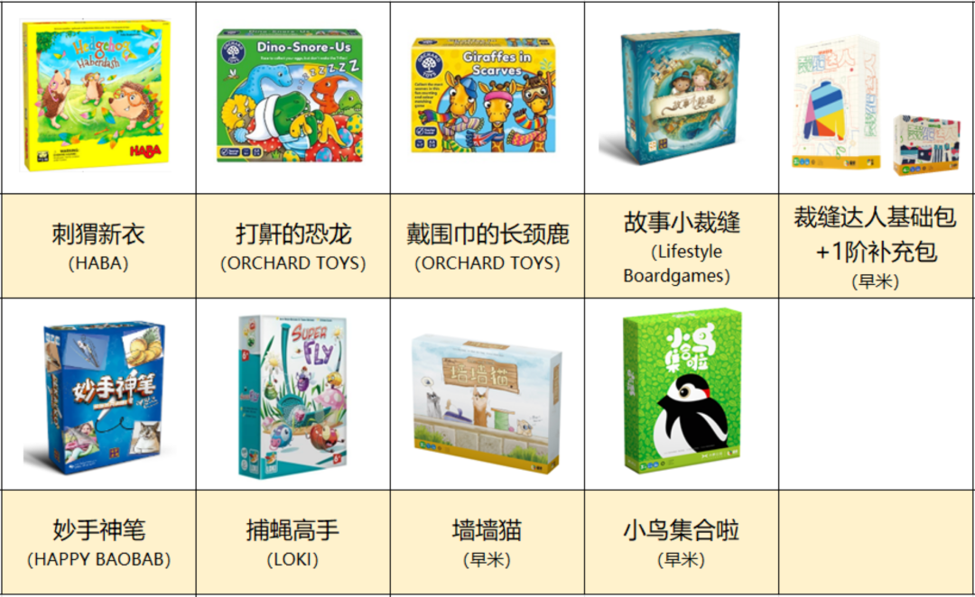 (点击下面图片可查看对应年龄段桌游包的详细介绍)