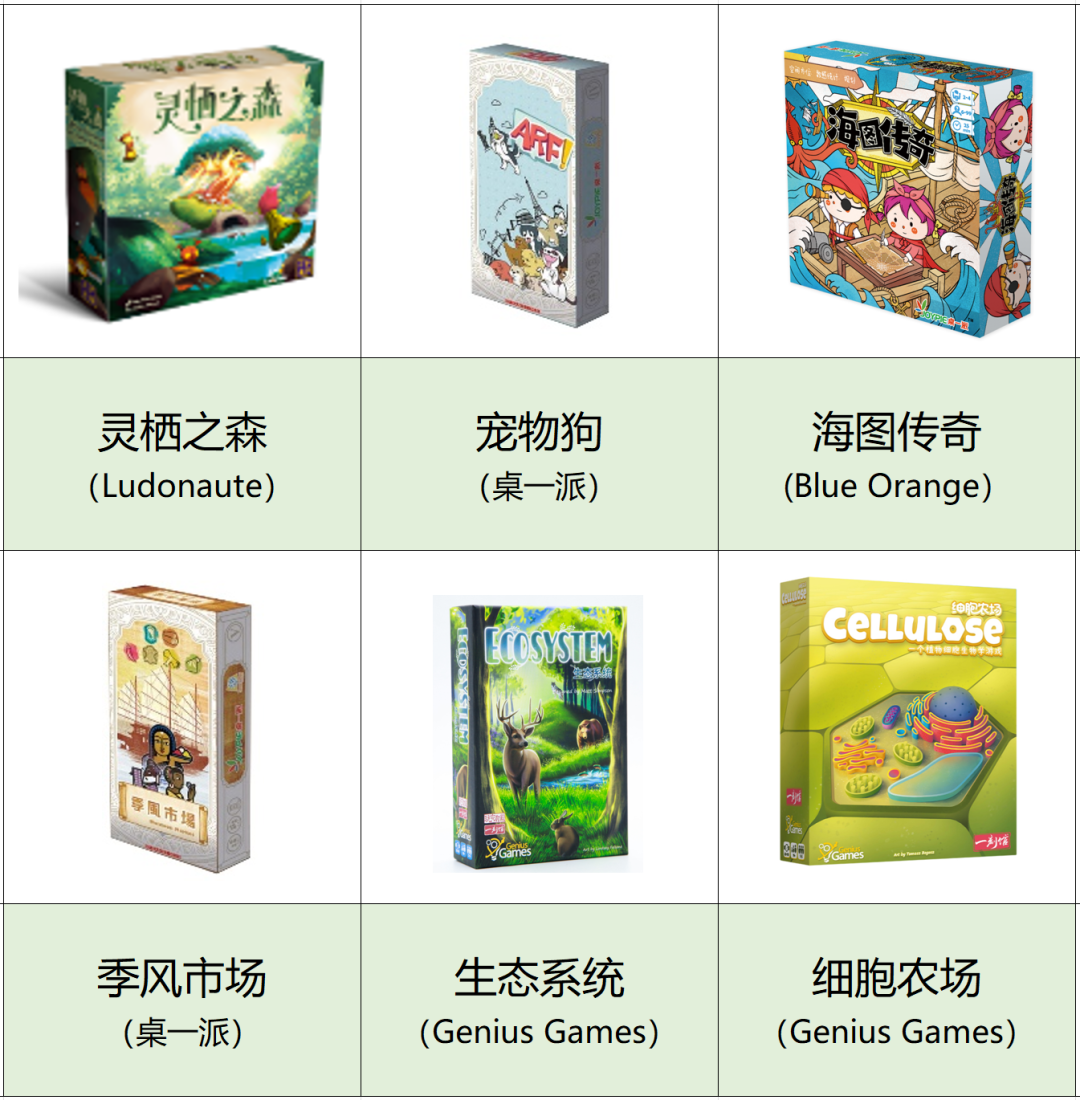 - “工人放置”、“手牌管理”、“聚会”、“成套收集”等重要的类型,都会出现;