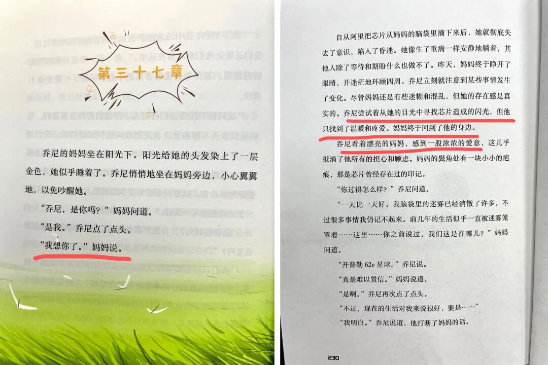 而当妈妈脑袋里的芯片被取出,恢复正常之后,对乔尼说“我想你了。”,简简单单四个字,却让人感受到了久违的母爱。
