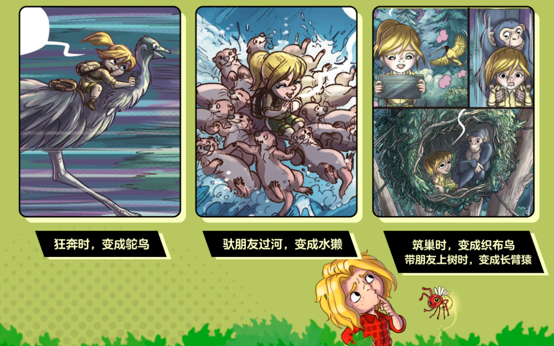 他熟悉动物习性,通过变身成各种动物,在逆境中灵活运用动物不同的特征和习性解决难题,完成冒险。