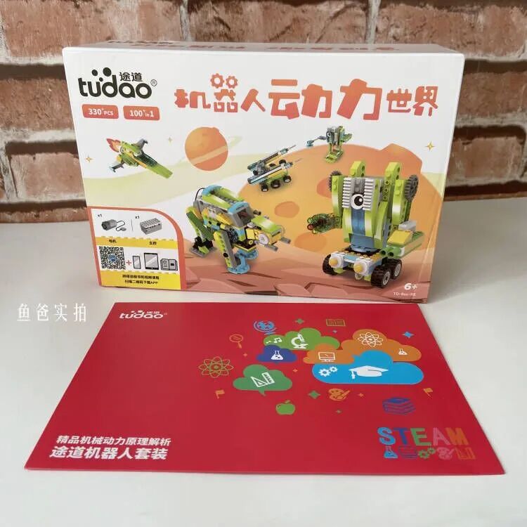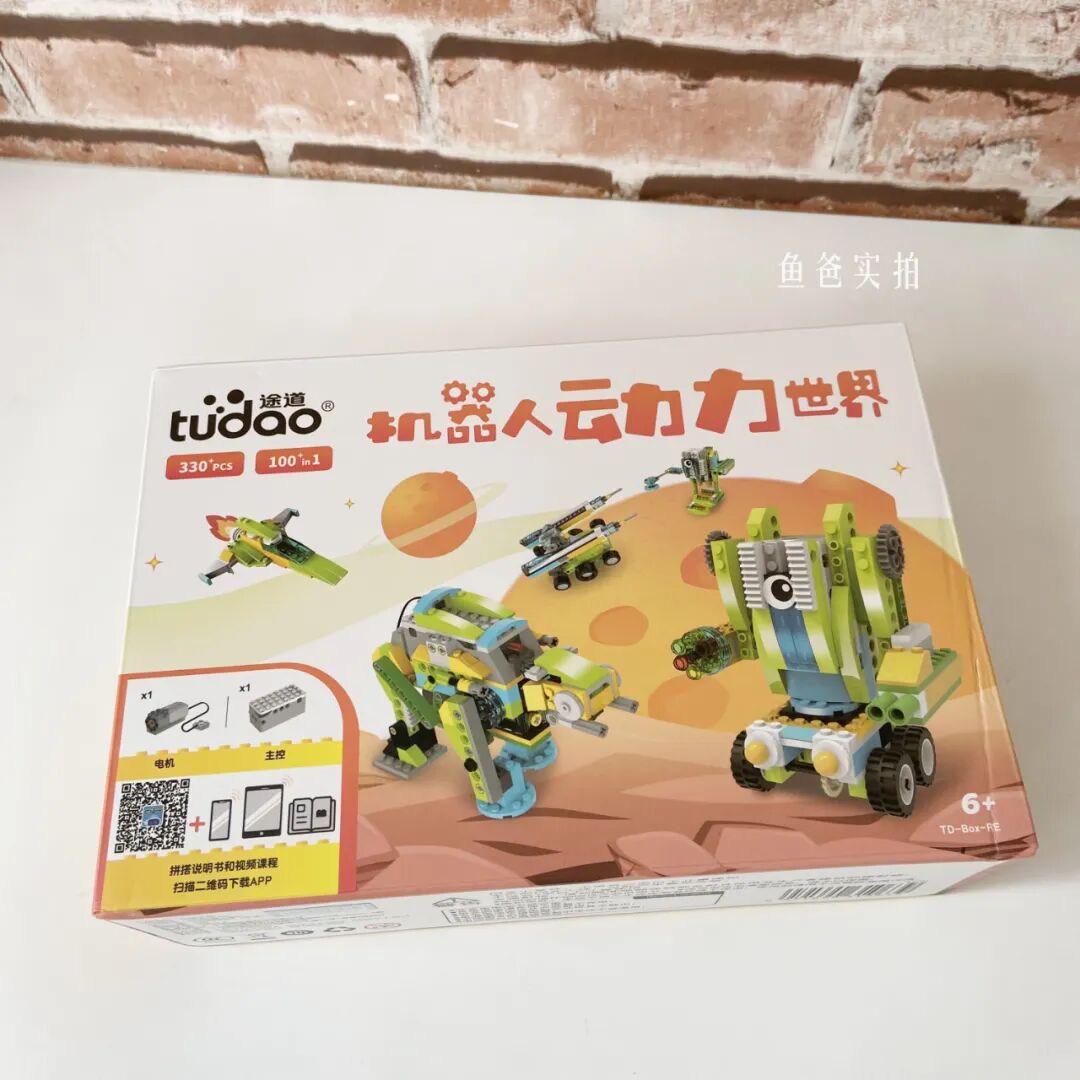 《机器人动力世界》配有主控和电机是一款能动起来的积木,颗粒也有330+,所以价格也会比普通的拼搭积木贵一点。