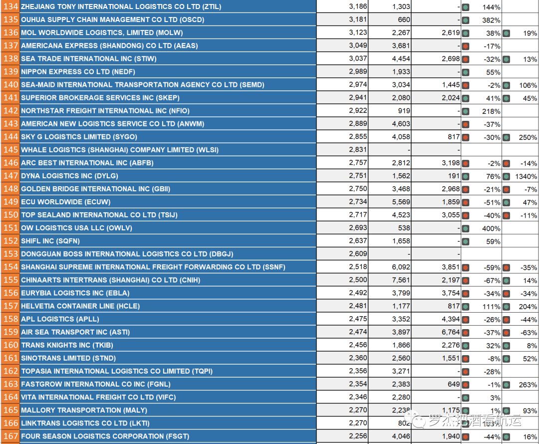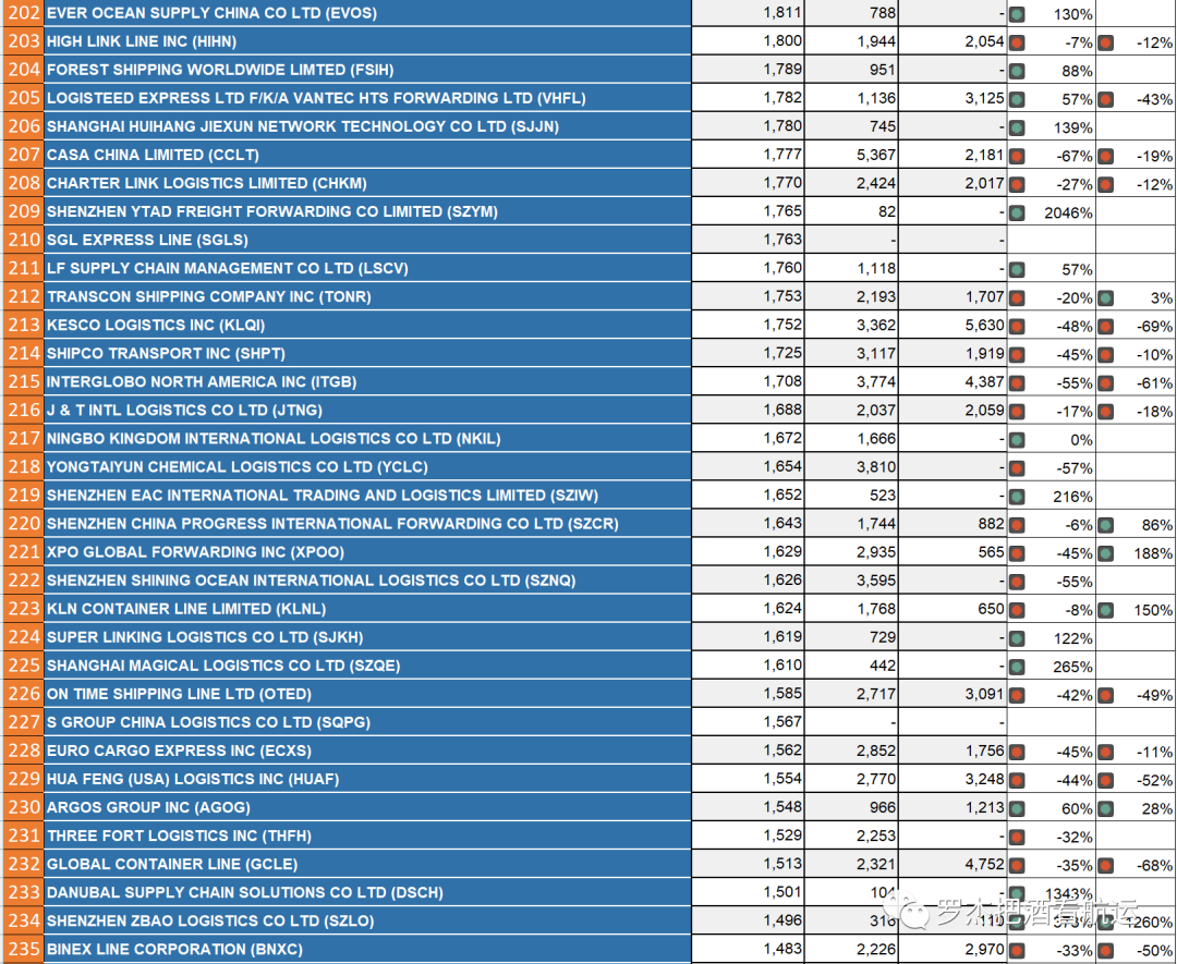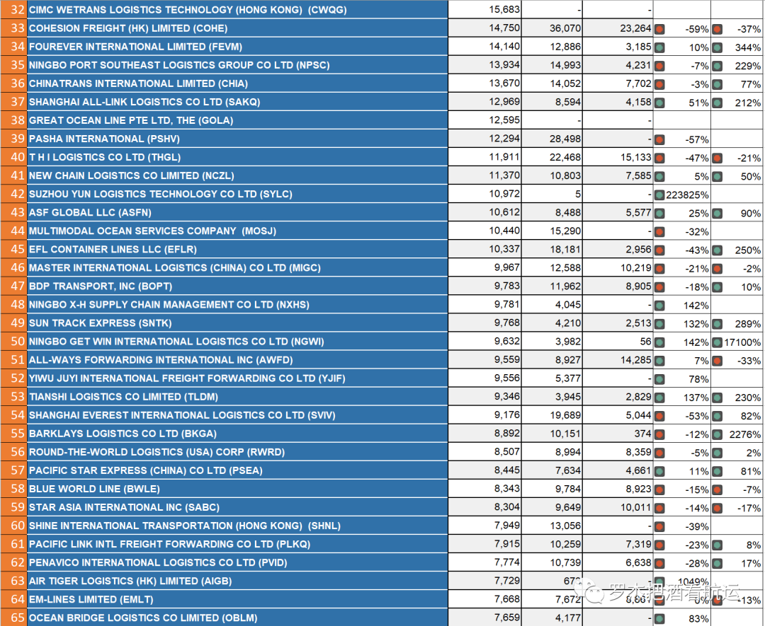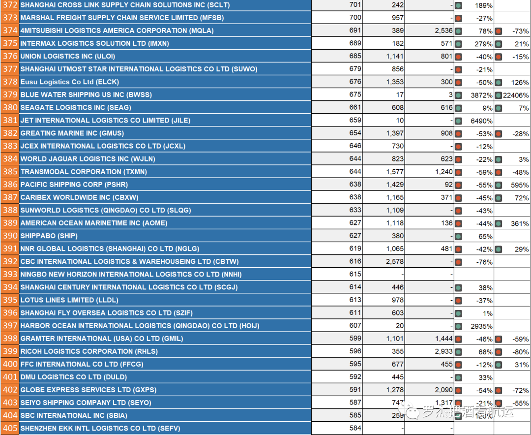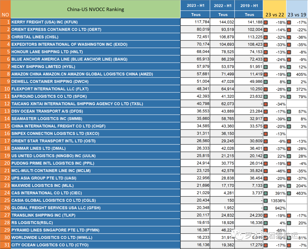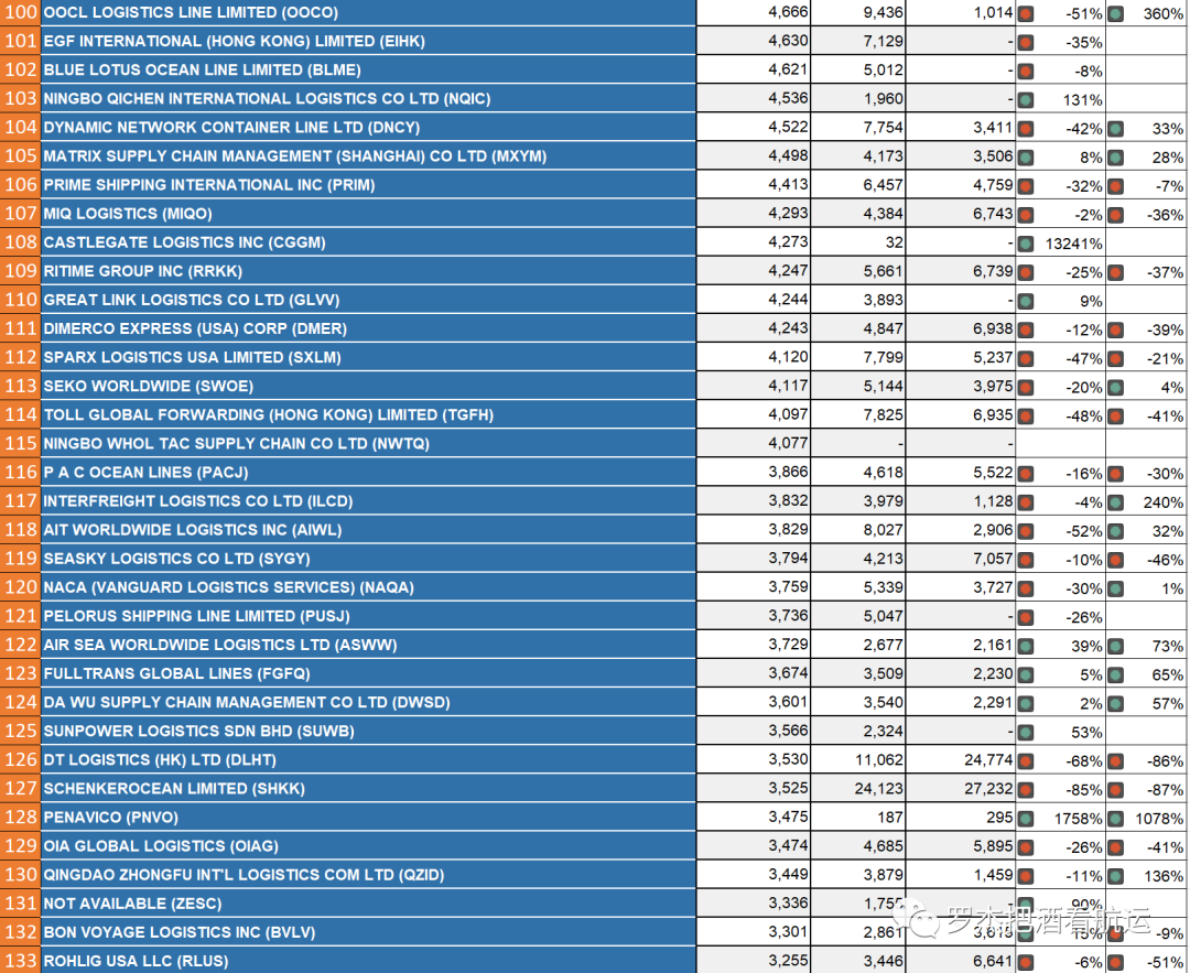 2023年一半已经过去,现在来盘点一下今年上半年的美线,先从货代排名开始。