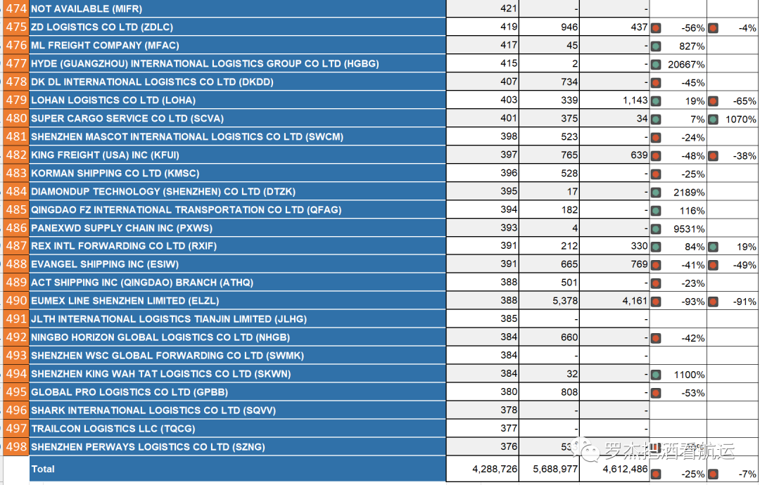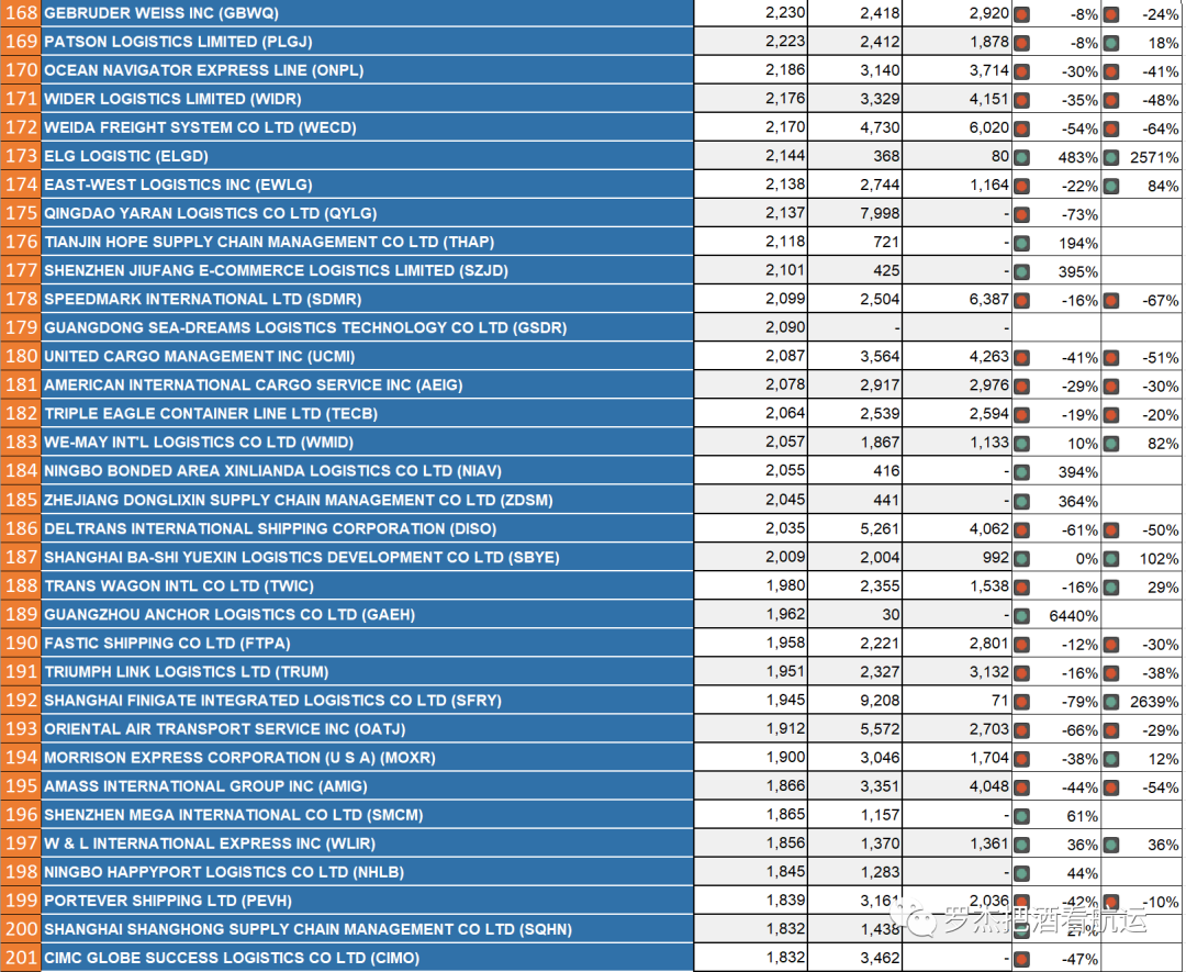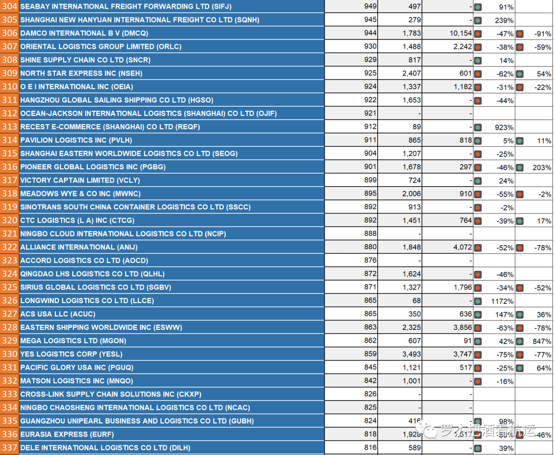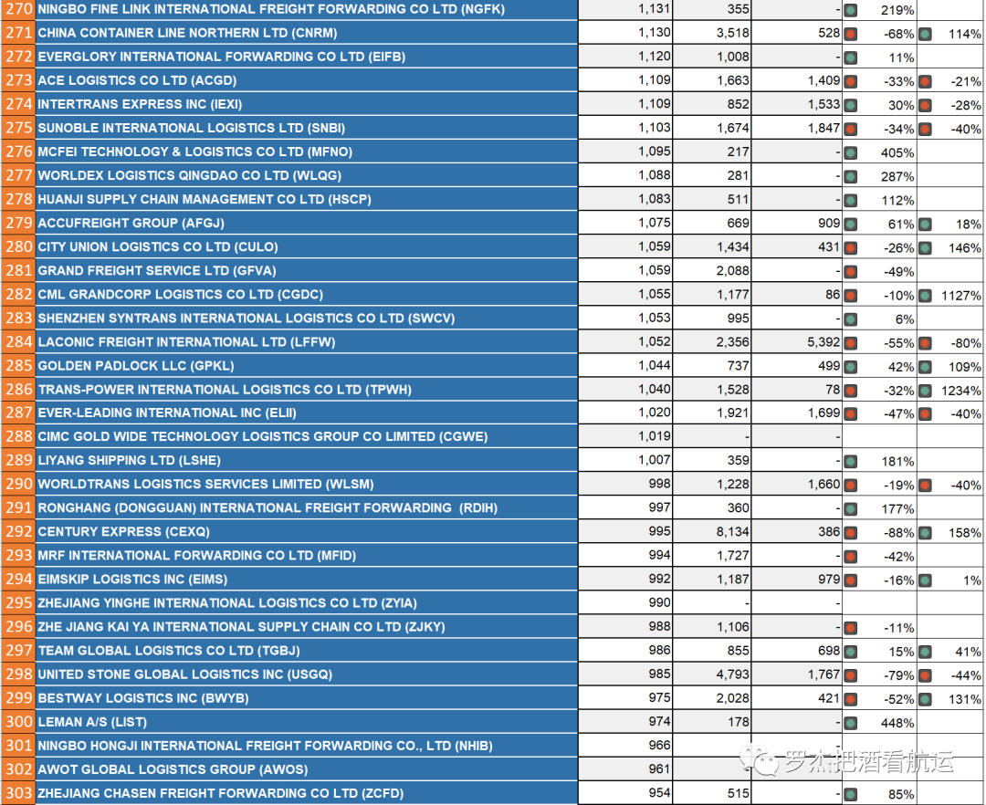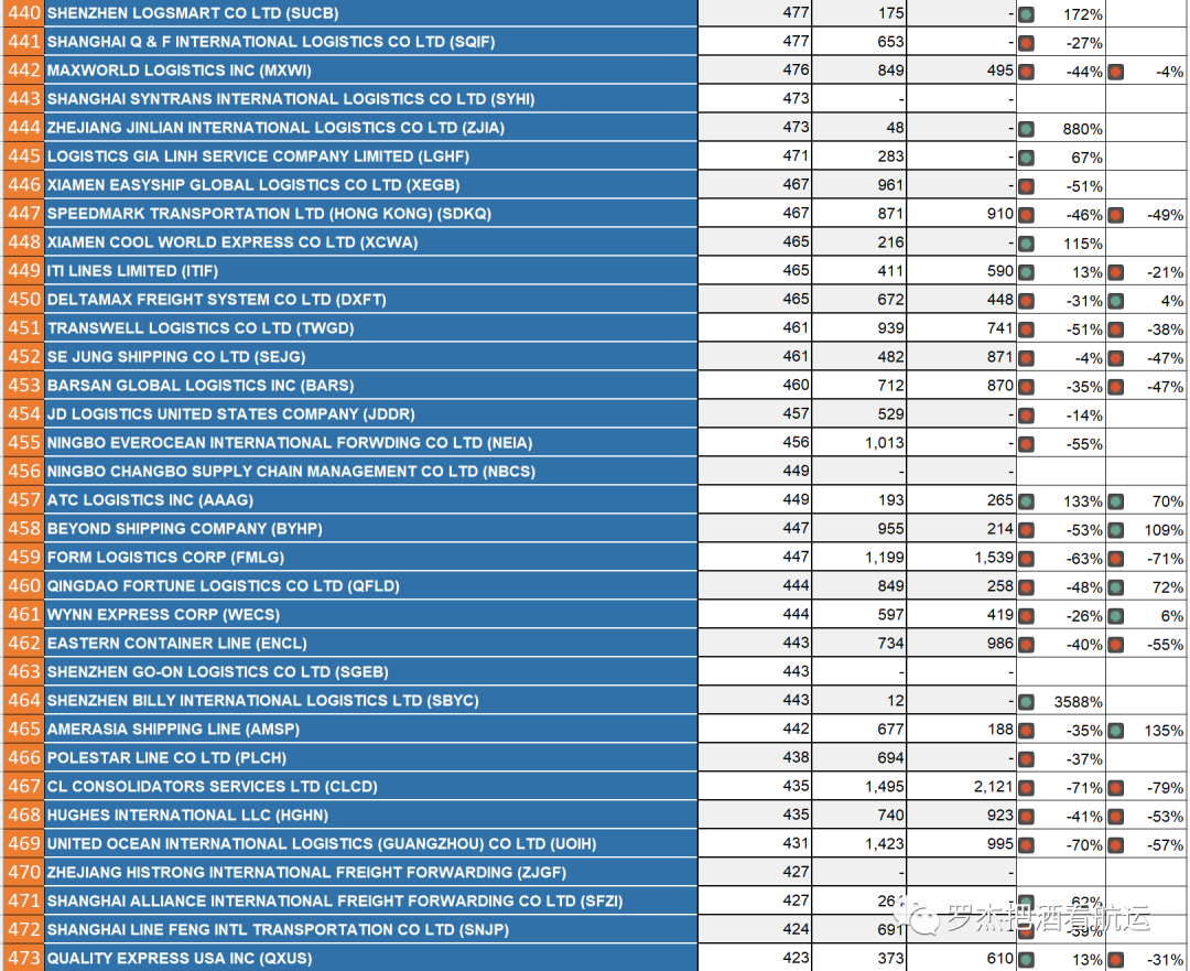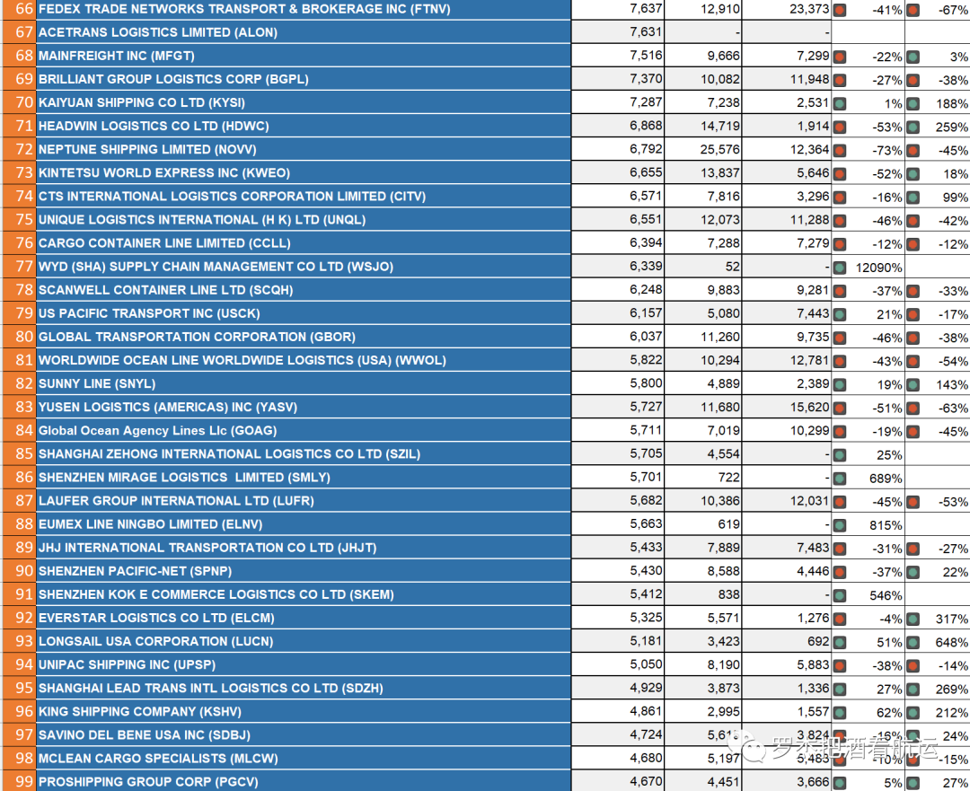 2023年一半已经过去,现在来盘点一下今年上半年的美线,先从货代排名开始。