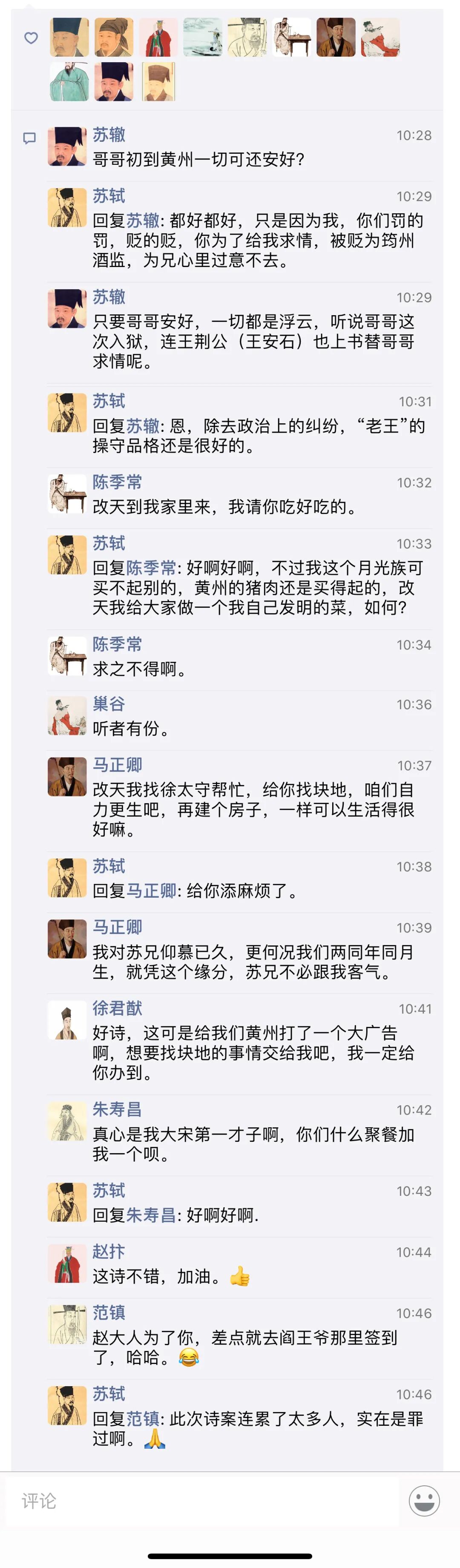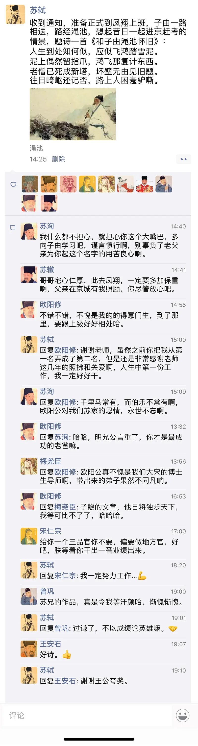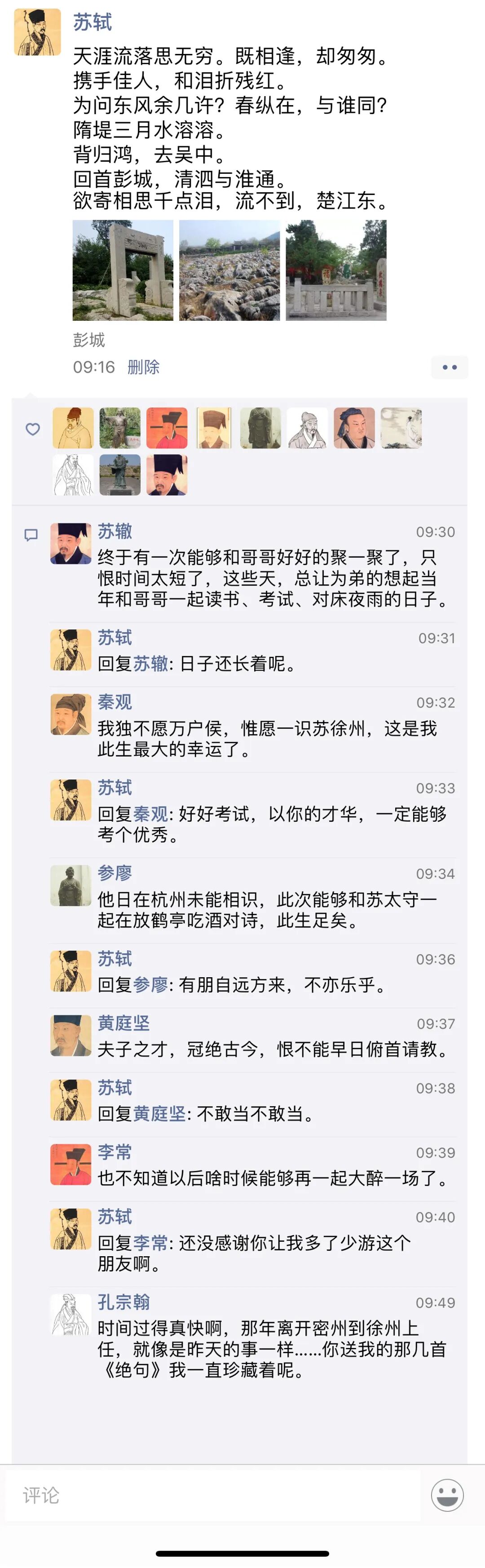 两人很愉快的相处了一个多月的时间,苏子瞻又写了几首诗,这次他没有再发朋友圈,其中一首是这样的: