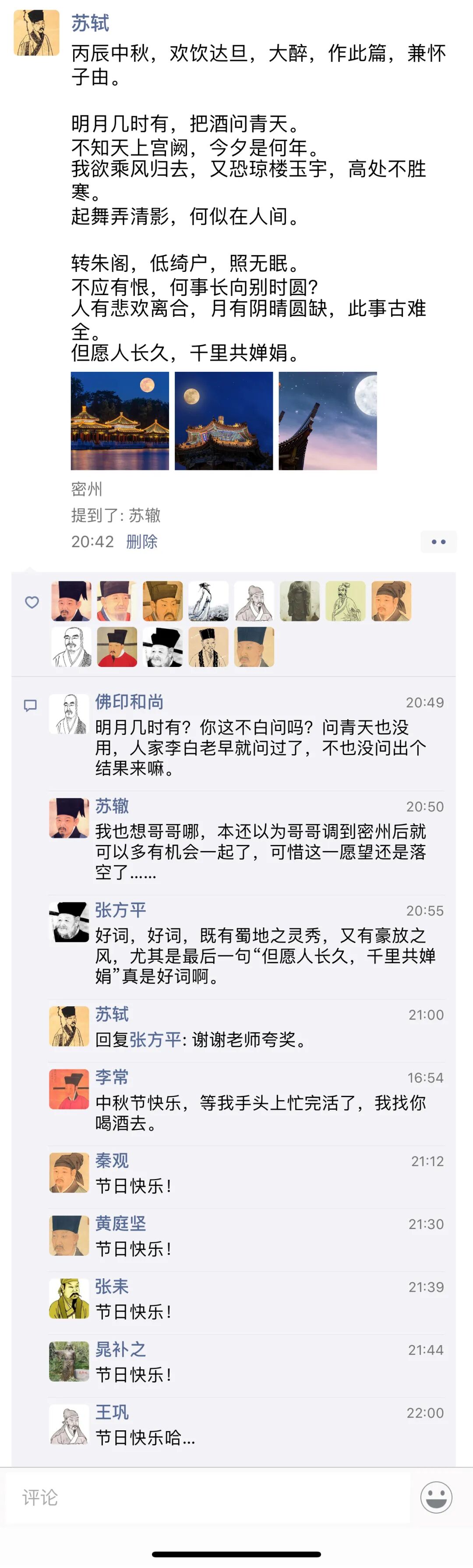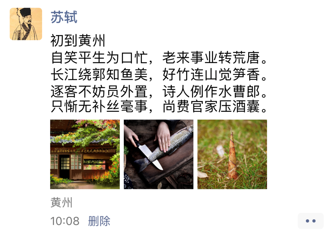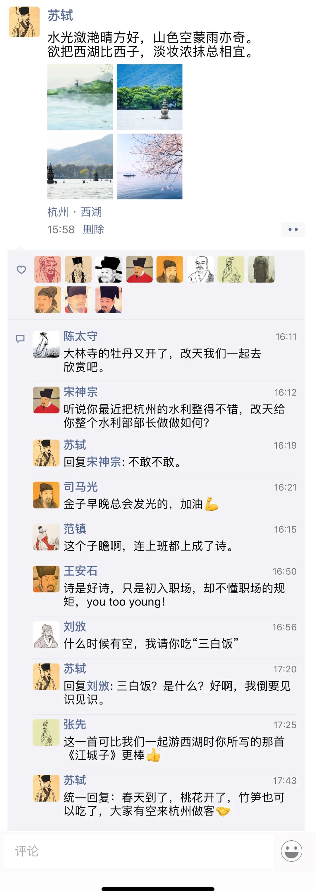 两人很愉快的相处了一个多月的时间,苏子瞻又写了几首诗,这次他没有再发朋友圈,其中一首是这样的: