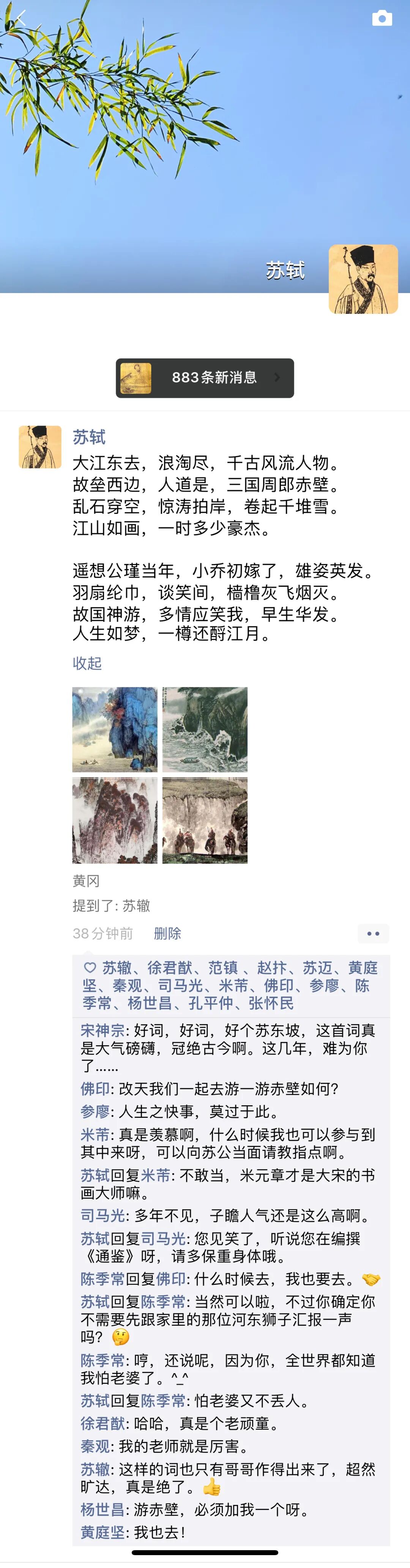 这天,东坡居士来到江边,望着长江水滚滚东流,有感而发,在朋友圈发了一首《念奴娇 赤壁怀古》。