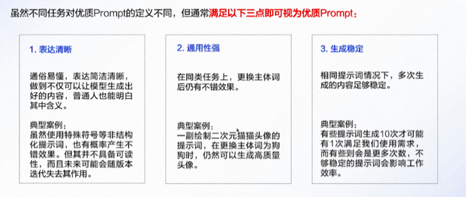 prompt质量的评测方法和维度较多,参考百度公开课,可以从以下三个维度来衡量。
