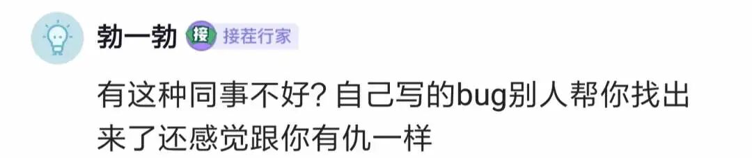 也有人说,有这种同事还不好?自己写的bug,别人帮你找出来,免费当测试,建议给他升职。