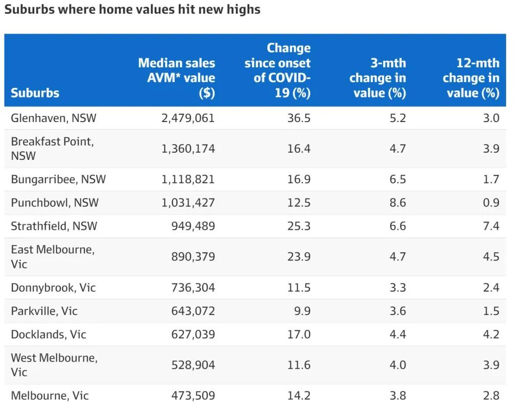 今年6月,悉尼Breakfast Point、Bungarribee、Glenhaven、Punchbowl和Strathfield的房价均创新高。
