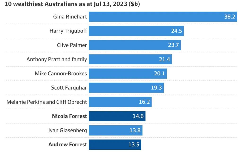 与此同时,Nicola首次进入富豪榜,她以146亿澳元的财富排在总榜第八位,并在女性富豪榜中排名第三。