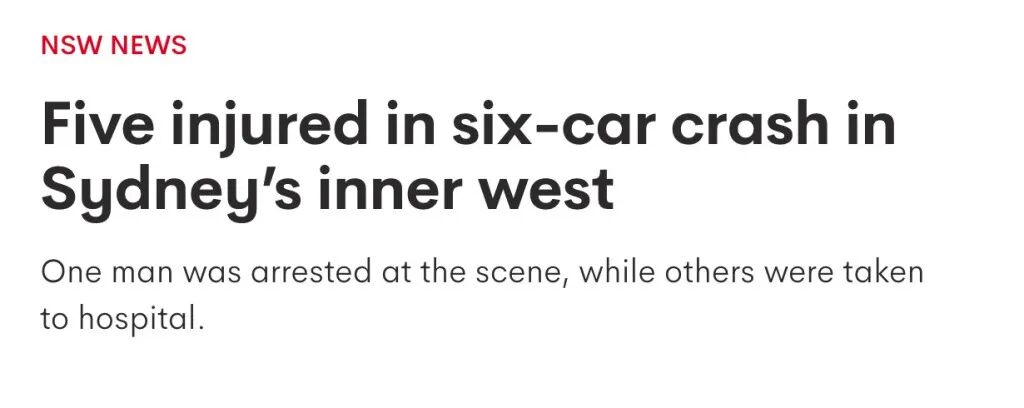 悉尼华人区6车连环猛撞,现场惨不忍睹,1人当场死亡!
