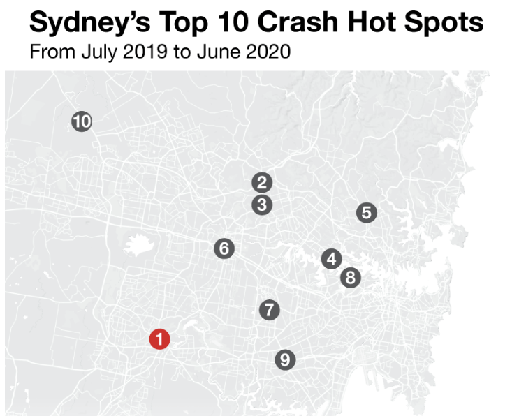 早先,悉尼曾公布过一个车祸多发地名单,其中就包括华人区Carlingford和Chatswood的两条道路!