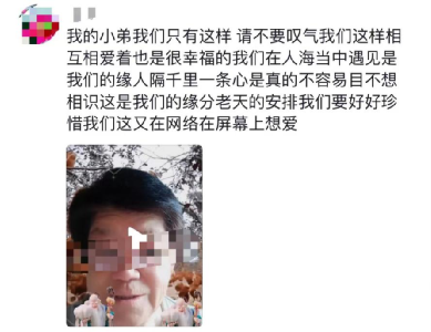 如今,随着短视频越做越火,各种类型的网红层出不穷,“擦边”已经成了一个标签。比如有的男士爱看跳舞的小姐姐,有的女士爱看油光锃亮的肌肉男。根据大数据,大爷们不爱黑丝、短裙、群魔乱舞,就喜欢看这笑眼弯弯故作纯情的妹子。阿姨们则喜欢看斯文绉正,成熟中又略带一点坏的弟弟。其实仔细看看这两位博主的外表,不难发现他们有一个共同点:再搭配上田间地头、土味情歌,分分钟把和粉丝的距离拉近到了床头。再翻翻评论区,突然觉得流量明星的脑残粉也不过如此。大爷一掷千金,惊呆了直播间里没见过世面的穷苦年轻人。原来互联网世界不仅有中老年人的一片天地,他们还玩得风生水起。于是,不曾出远门的奶奶竟然买了一张火车票,站了整整一夜,跑到安徽。奶奶不懂,她只知道手机里的秀才温柔帅气,给了自己很多陪伴。最近这段时间,@秀才和@一笑倾城的账号已经被年轻人“攻陷”。而大爷、阿姨们的文字和行为滑稽搞笑,刚好提供了无尽笑料。为什么平日里在子女面前一本正经的老人们转眼又变得如此奔放?很多老人认为网络社交是一对一的,关注了这些博主,就互相成了好友,就像玩微信、QQ一样。他们初次接触短视频,也会以为自己看到的、听到的,就是对方专门发给自己的。他们可能并不知道自己的留言会被全网看到,也不知道自己会被嘲笑。这里的“无知”并没有任何贬损的意思,只会让人觉得心酸。老年相亲节目《相亲相爱》里有一位让人印象深刻的阿姨,她的老伴儿患上癌症去世,此后她每天在孤独中伤感。阿姨最后勇敢地选择相亲,替自己找一个称心的伴侣,她不在乎别人怎么看待自己。一个AI生成、假得不能再假的靳东,念着批量生成的文案,却让无数老年妇女陷入情网无法自拔。组内数万名20岁左右的年轻人,他们都希望教会父母上网。有位组员的爸爸是工科博导,却始终学不会使用智能手机。五六十岁的父母尚且如此,更不用说那些七八十岁的老人。就像年轻人理解不了“秀才”这样的网红为什么会有几千万人捧。终有一天,我们中的大多数也会面临公共话语权缺失的问题。“你们的年轻不是你们努力的奖励,我们的衰老也不是我们犯错的惩罚。”中国人明明热爱性,看重爱,更是把生死看作人生大事……真到了那一天,希望我们能为自己勇敢一回,整个社会也能允许我们勇敢一回。PS. 碎片化时代,更文不易,欢迎在文章结尾给我们点一个【赞】+【在看】,你的支持就是我们前行的动力!