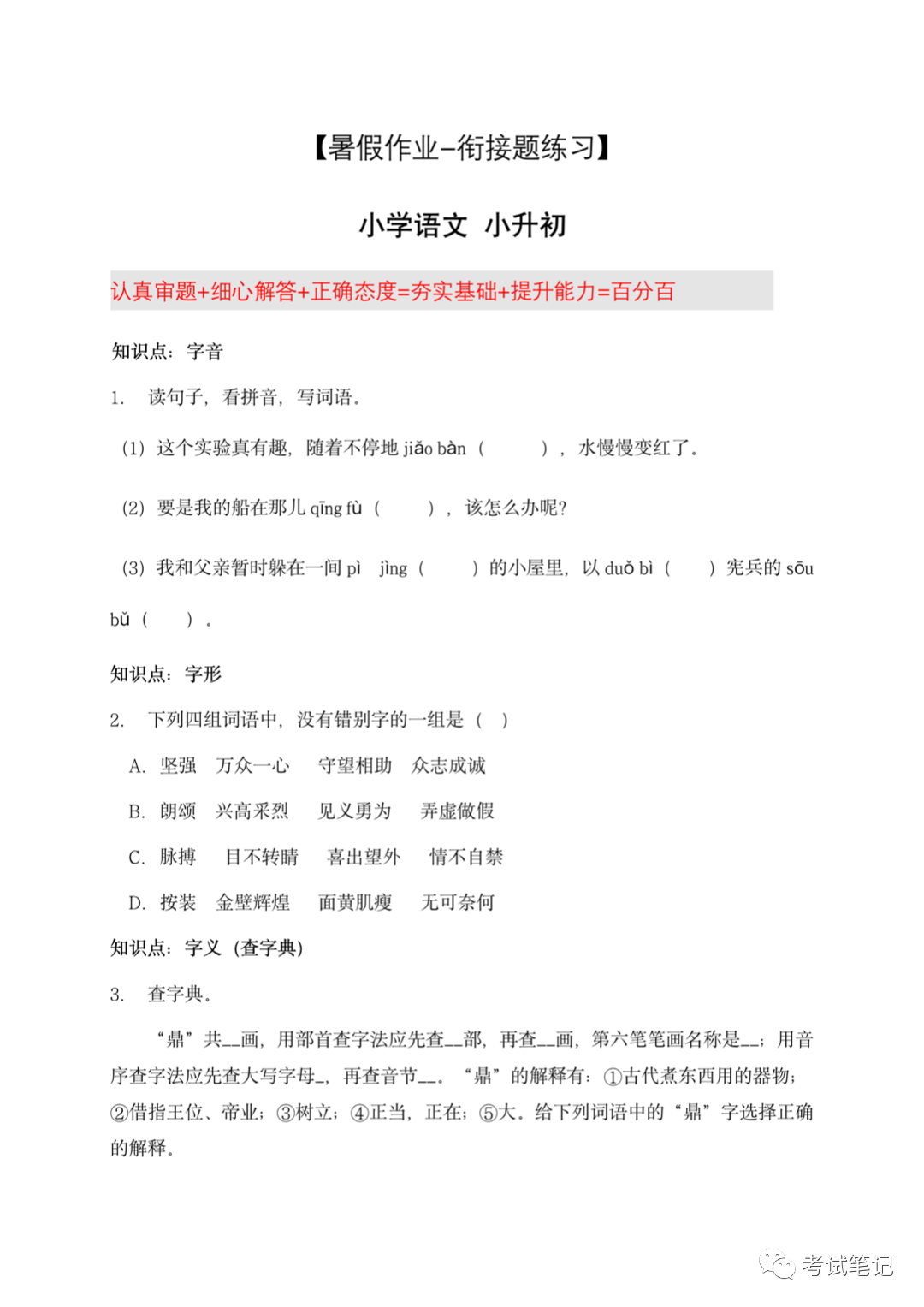 小学语文小升初:暑假衔接题练习3,认真审题+夯实基础!