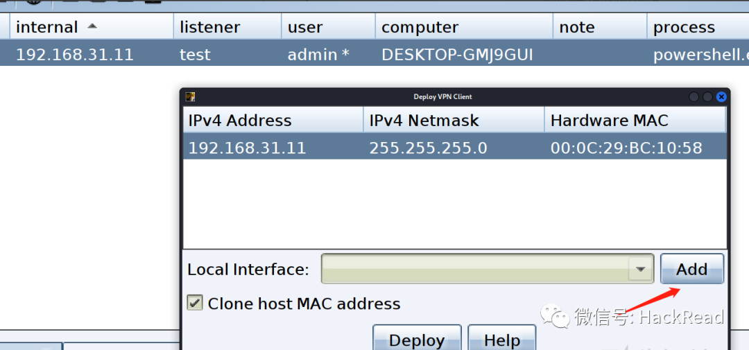 ifconfig在具备高权限的beacon下,选择piovting模块,找到deploy vpn这个选项