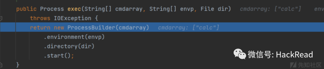 之后通过参数是String[]类型的另一个重载方法,通过调用ProcessBuilder类的方法进行执行