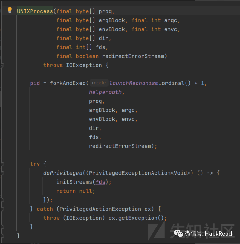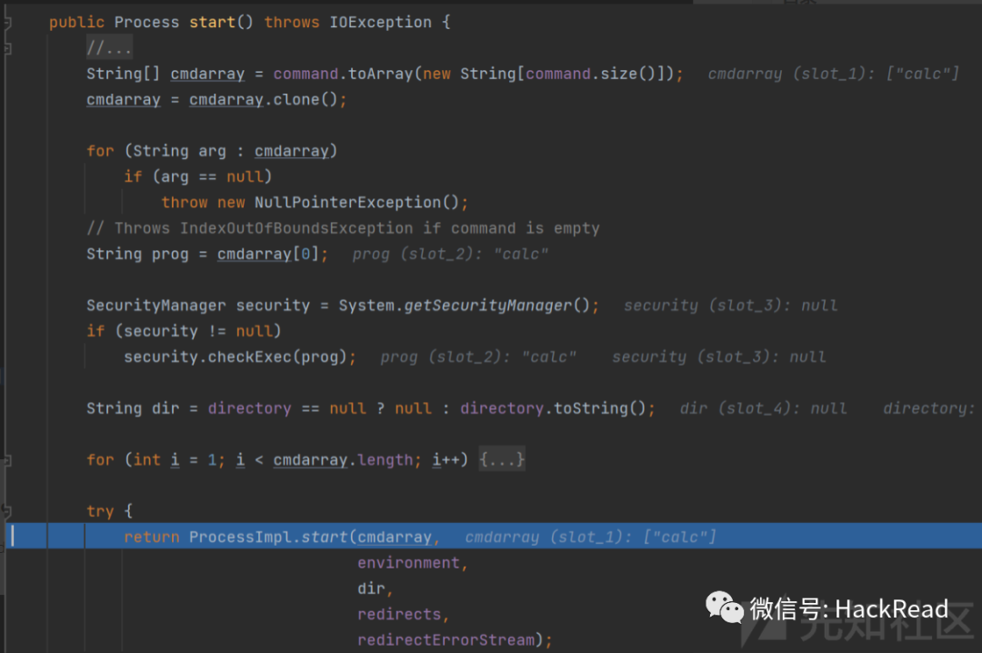 在上面的流程分析中,知道了在Runtime.getRuntime().exec()方法调用的下一层就是使用ProcessBuilder#start方法。