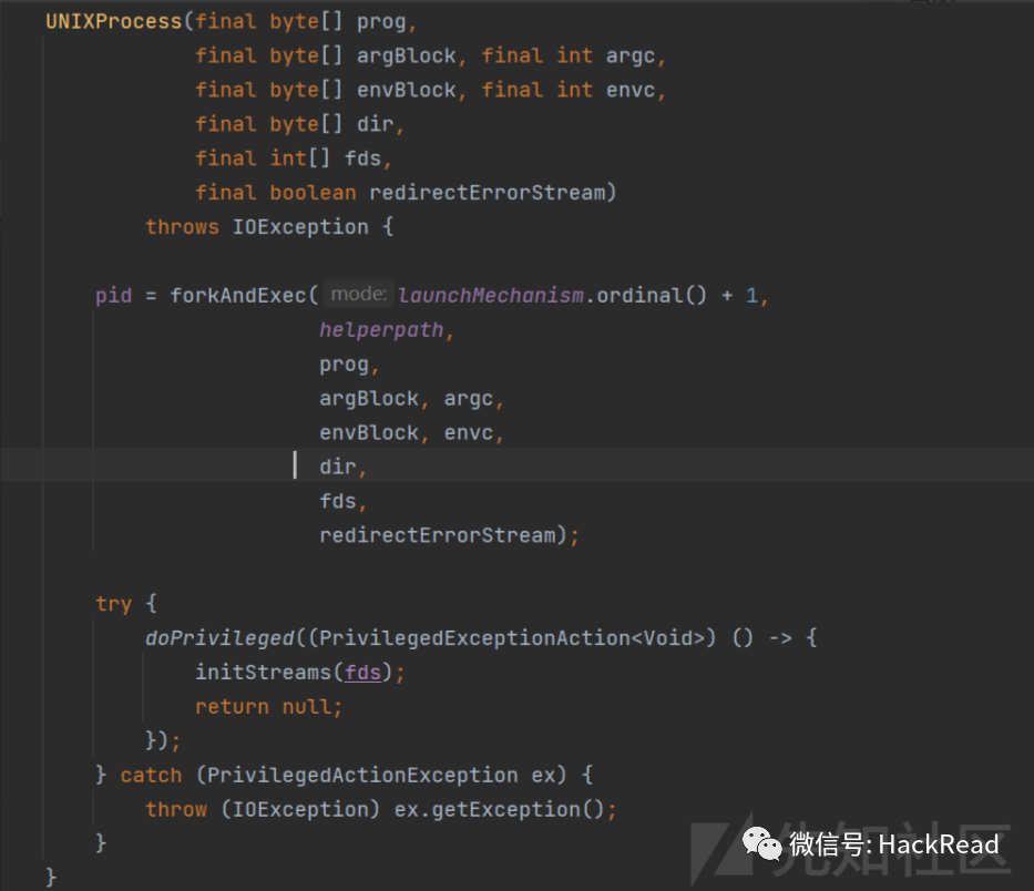 在UNIXProcess类的构造方法中,调用了forkAndExec这个native方法