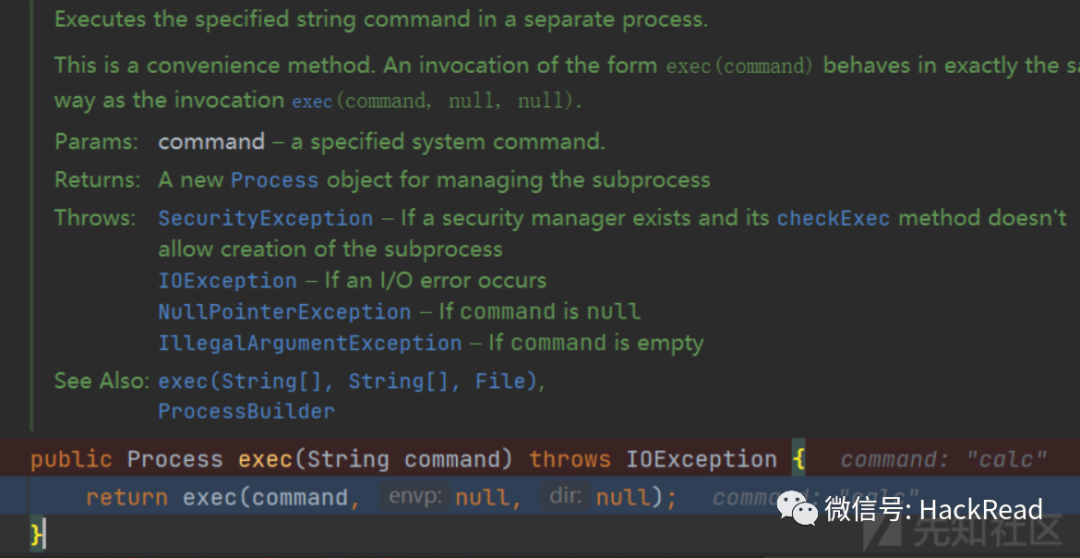 同样的,在Java中盛行的反序列化漏洞中,如果将RCE的功能简单的通过Runtime.getRuntime().exec(cmds)这种结构来进行实现可能大概率也不能达到我们的目的,所以探索一下Runtime的底层实现,使用更加底层且复杂的调用来进行RCE功能的实现相对来说更加的可行。