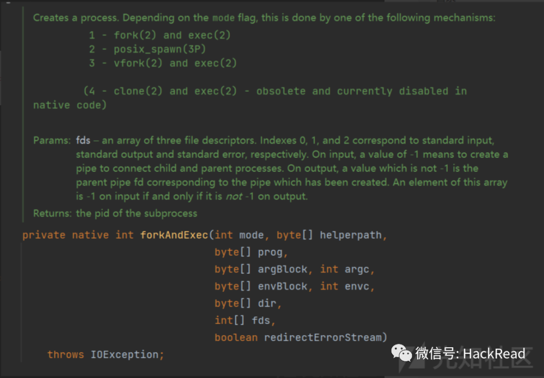 上面是针对windows的方式,针对linux,在前面的分析中知道主要是在其start方法中调用了UNIXProcess类的构造方法