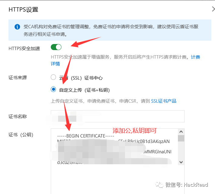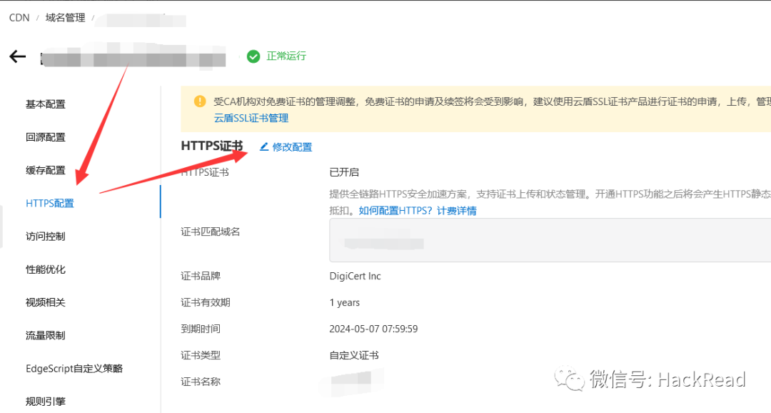 接着为cdn节点添加证书,到阿里云的cdn控制器